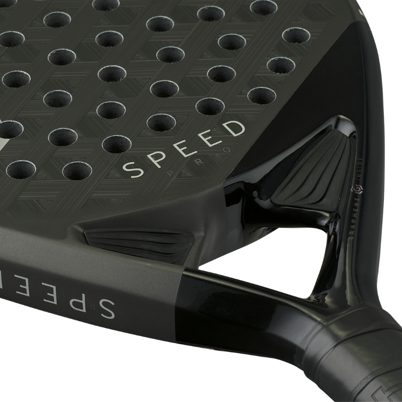 Parmi les innovations de la Speed Pro 2025, on retrouve la technologie Auxetic 2.0, qui adapte la flexibilité de la raquette selon la force de vos frappes, vous offrant ainsi un contrÎle précis et une réponse immédiate.