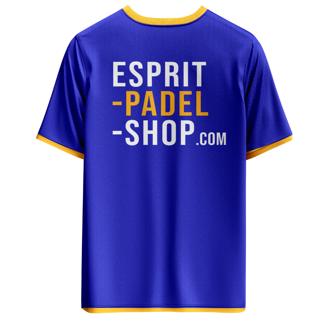 Arborant le logo d’Esprit Padel Shop au niveau de l’Ă©paule gauche, celui-ci est Ă©galement prĂ©sent sur la manche.